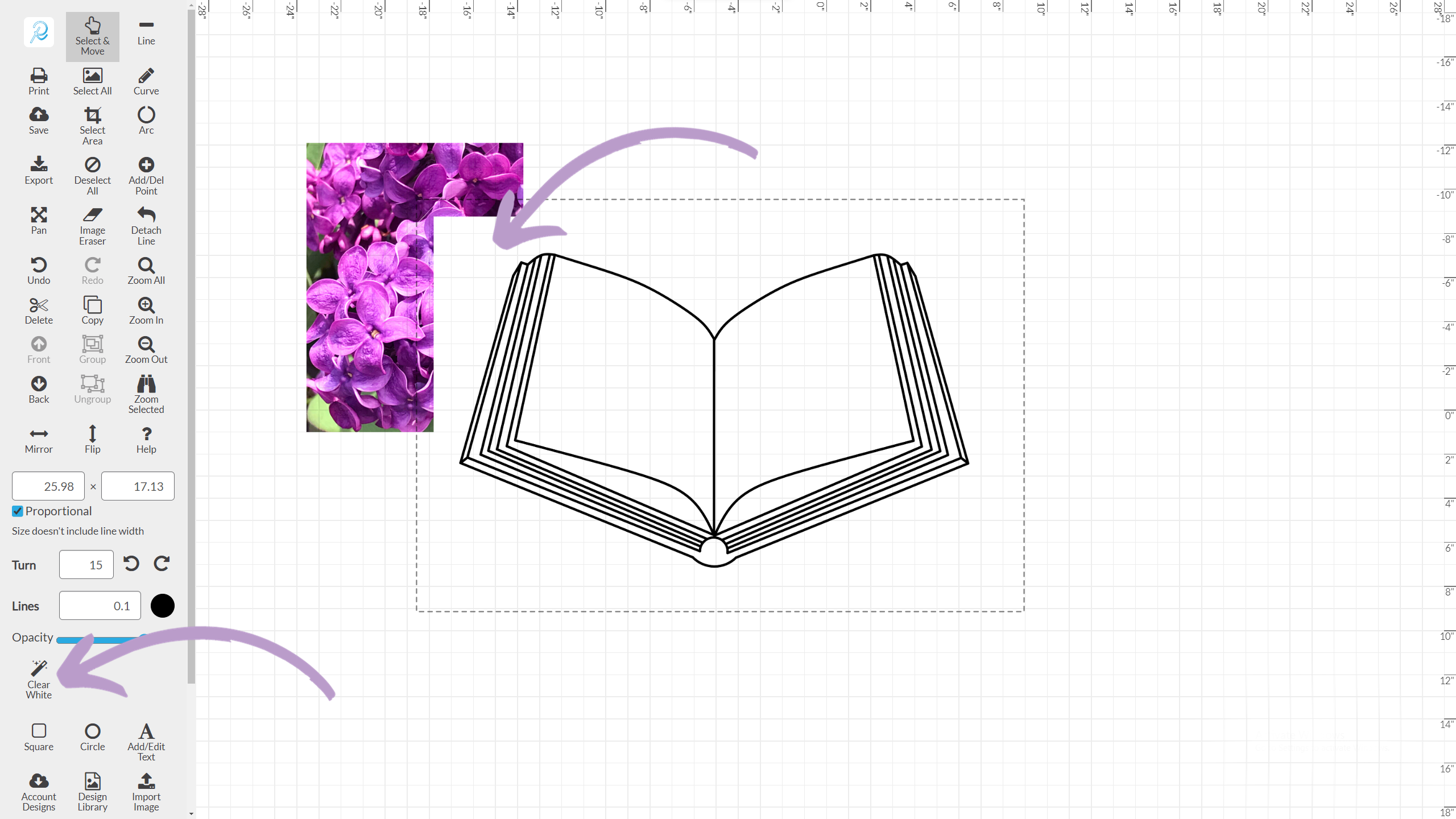 If you'll want to crop your design, do that before erasing parts. Cropping is also accessible from the Customize & Resize step where you enter your design's full size in the Customize Tab.